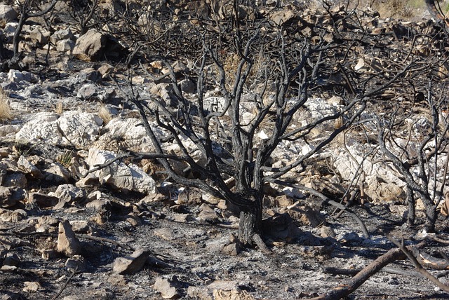 shrub, tree, burnt, calcined, trunk, nature, fire, ash, dead, cove, ravage