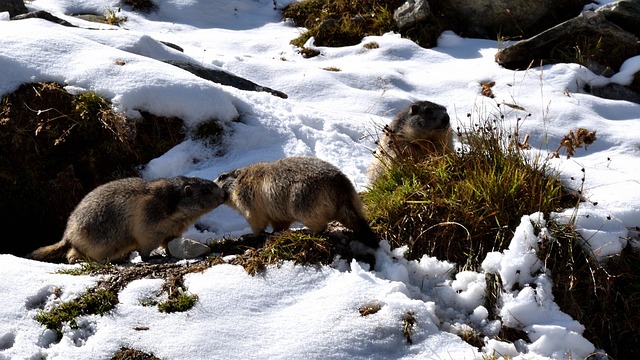 marmots, snow, nature, animals, play ground, saas fee, valais, switzerland