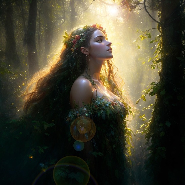 Acrylic Prints: ai generated, hera, zeus, athens, greece, mythology, forest, trees, spring, beauty, magic, mysterious, nature, fantasy