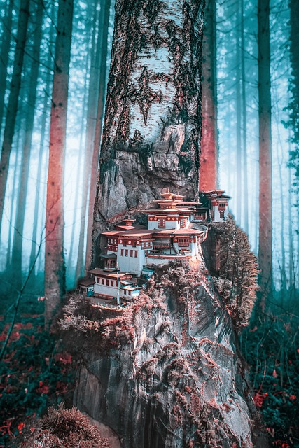 Acrylic Prints: tree, forest, trunk, village, building, photoshop, background, fantastic, fantasy, surrealism, rock, city, iphone wallpaper