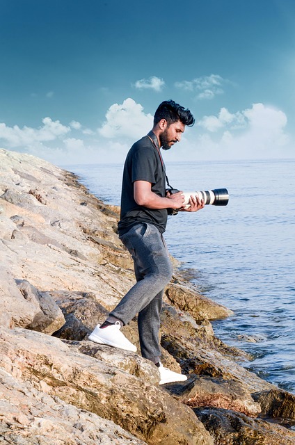 Canvas Prints: photographer, man, sea, beach, ocean, taking photos, taking pictures