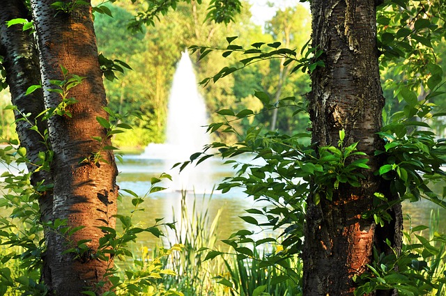 Duvet Covers: park, trees, pond, fountain, view, see through, scenic, sunny, summer, amstelpark, amsterdam, netherlands