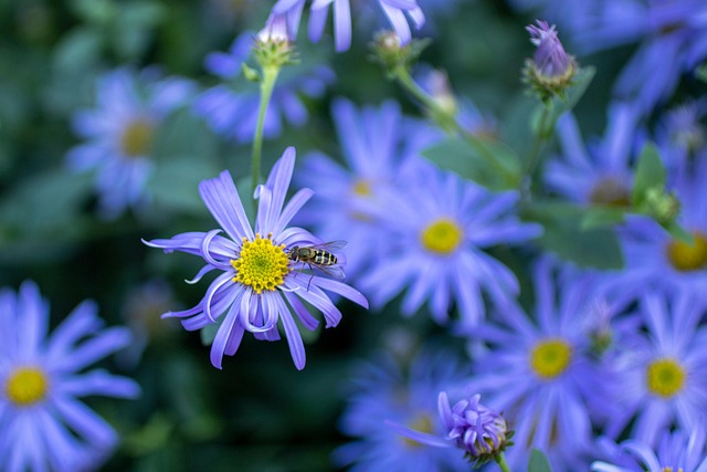 Duvet Covers: swan river daisies, flowers, bee, insect, plant, pollination, purple flowers, garden, nature, bloom, blossom, closeup