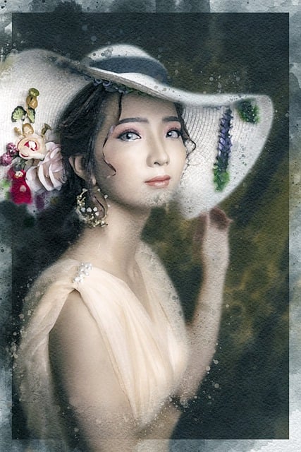 Duvet Covers: woman, face, hat, dress, formal, jewelry, asian, hair, brown hair, painting