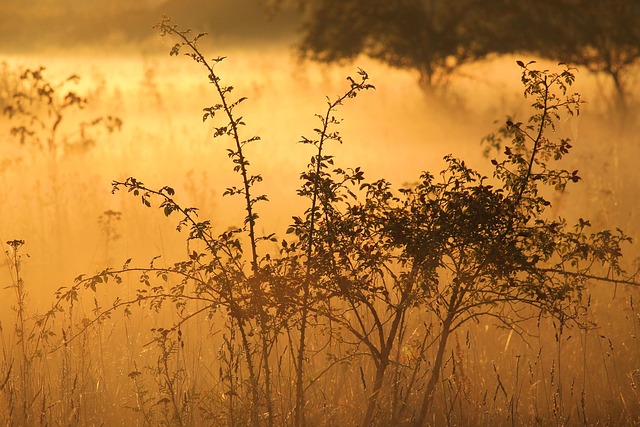 Framed Prints: bushes, shrubs, sunrise, fog, foggy, foggy morning, haze, mist, misty, countryside, rural, landscape, early morning