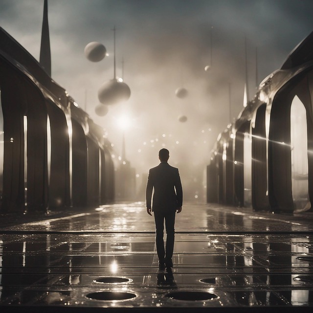 Greeting Cards: ai generated, man, lonely, future, futuristic, advance, alone, technology