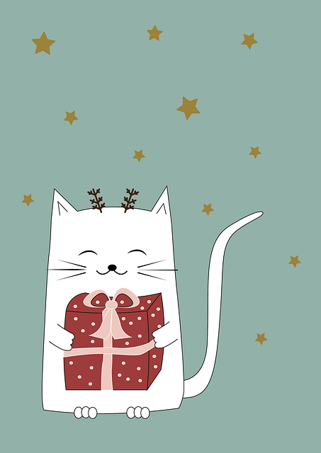 Greeting Cards: xmas, christmas, cat, gifts, advent, december, snowing, stars, presents, merrychristmas, wallpaper, cartoon, background, snow