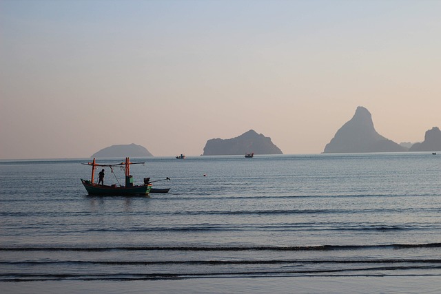 Metal Prints: sunset, sea, ship, sky, water, nature, ocean, evening, beach, beautiful, landscape, beard, coinciding, mood, atmosphere, fishing boat