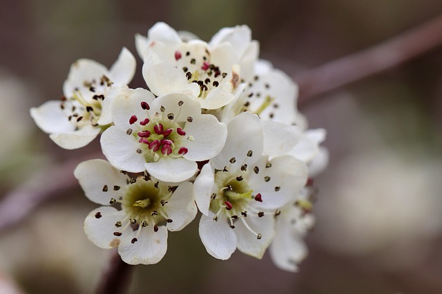 Metal Prints: willow-leaved pear, pear, pear tree blossom, blossom, stamens, petals, pyrus salicifolia, blossom, bloom, pistils, white, spring, pome fruit family, bloom