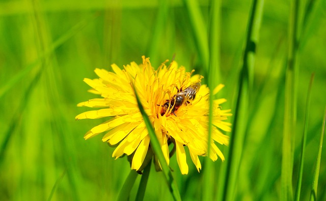 Pillows: common sowthistle, bee, pollination, yellow flower, flower, meadow, sonchus oleraceus, spring, insect, nature