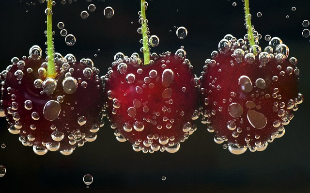 cherries, red, round, fruit, food, fruity, enjoyment, yummy, vitamins, cute, sweet cherries, red cherries, nourishment, meal, fresh, sweet, summer, tasty, water, immersion, vesicles, gas bubbles, dive, refreshment, close up, air bubblesSHARE