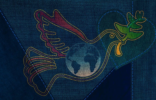 Towels: dove, peace, world, symbol, hope, dove of peace, jeans, heart, world peace, flying, global, courage, denim, design