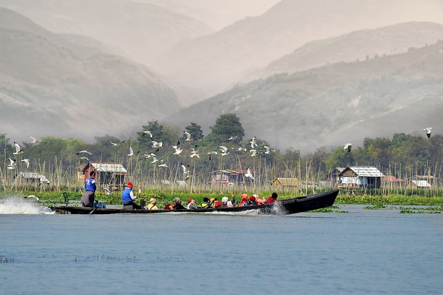 Towels: inle lake, burma, myanmar, boat, lake, the water, inle, floating gardens, travel, landscape, nature, bird, on the water, asia