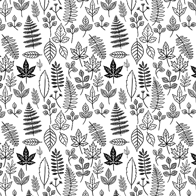Prints and Posters: leaves, plant, pattern, fern, black and white, monochrome, trees, wallpaper, design, maple, vector art, line art, background, decorative
