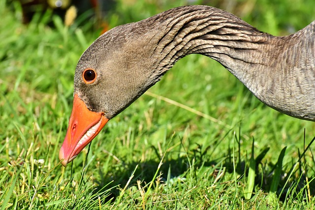 Shower Curtain: goose, bird, greylag goose, animal, poultry, plumage, feathers, beak, wild goose, grass, water bird, waterfowl, head, neck, wildlife, close up, nature