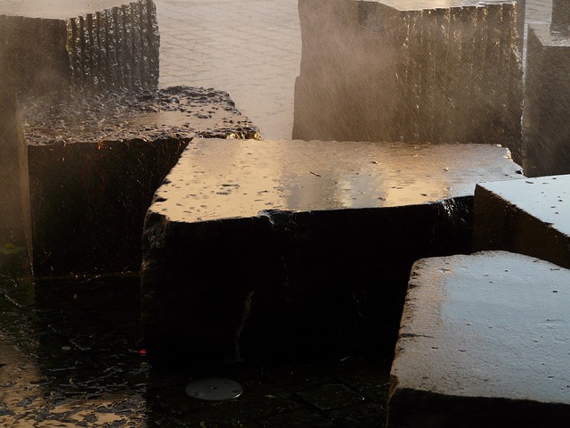 Shower Curtain: stone, granite block, water, wet, atomize, splash
