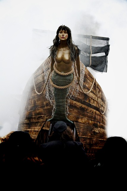 Tote Bags: mermaid, character, figure, sculpture, ship, front, fog, figurehead