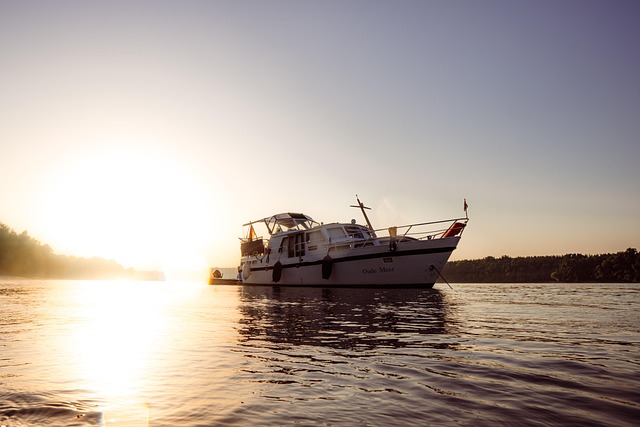 river, boat, sunset, nature, blue, beach, blue sky, sand, calm, sky, tree