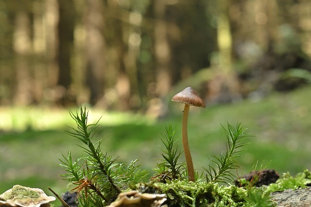 mushroom, small mushroom, moss, forest floor, forest, summer, nature