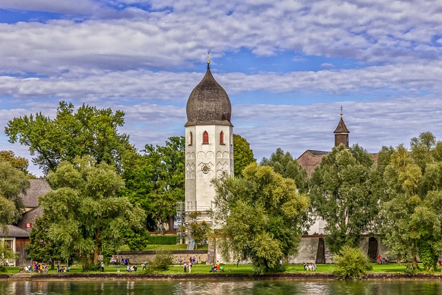 Acrylic Prints: woman chiemsee, landscape, nature, church tower, panorama, ladies island, chiemsee, bavaria, vacations, view, summer, sightseeing