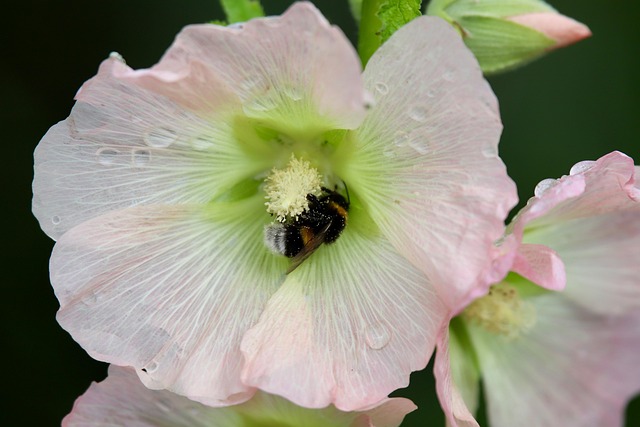 Canvas Prints: field bumblebee, insect, bee, pollination, hollyhock, entomology, mallow, bumblebee, pollen, pollinate, stamens, petals