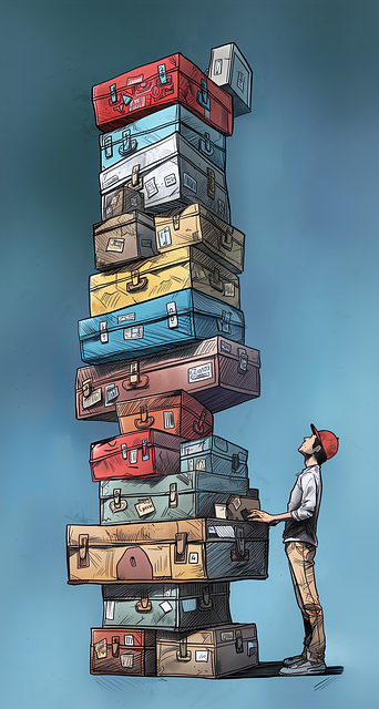Canvas Prints: package, balance, character, man, humor, cardboard, suitcase, handling, worker, generated