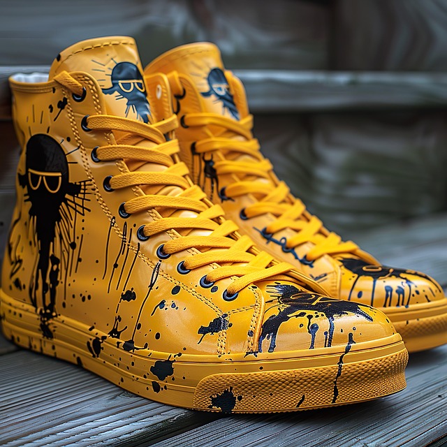 Duvet Covers: ai generated, yellow sneakers, sneakers, shoes, footwear, fashion, trainers, feet, yellow, laces, clothing