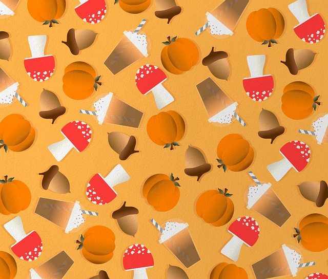 Duvet Covers: autumn, nature, season, mushroom, pumpkin, autumn colours, coffee, background, pattern