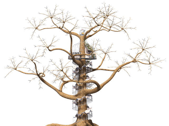 Duvet Covers: tree, fantasy, spiral staircase, fairy tale, without leaves, leafless, digital art, isolated, treehouse