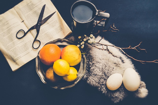 Framed Prints: still life, vintage, fruit, fruits, apple, lemon, eggs, composition, food, nice