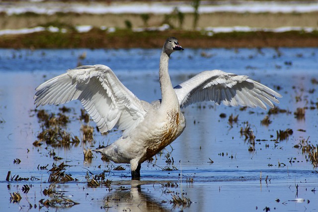 Pillows: animal, yamada's rice fields, waterside, aquatic plants, bird, wild bird, fields, swan, cygnus columbianus, wings, wild animals, natural, landscape