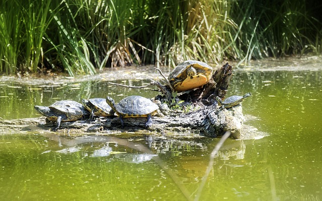 Pillows: turtles, warming up, sun, log, the water, lake, plants, vegetation, the nature