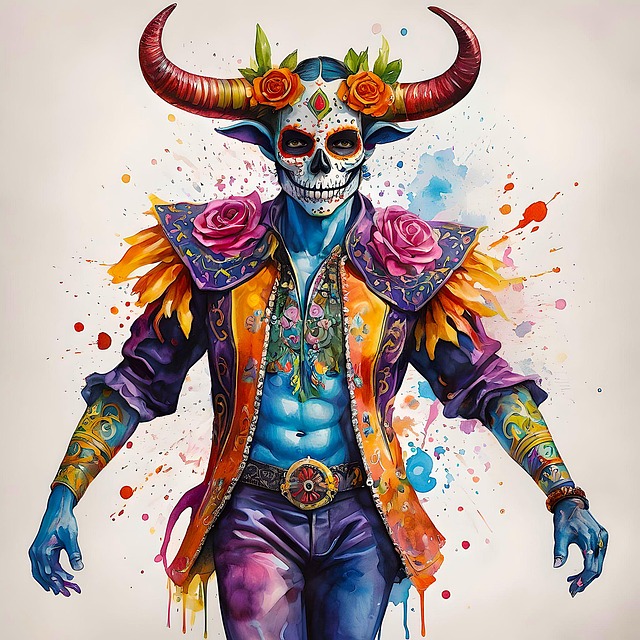 Prints and Posters: ai generated, día de los muertos, day of the dead, mexico, demon, prince, fantasy, watercolour, colourful, artwork