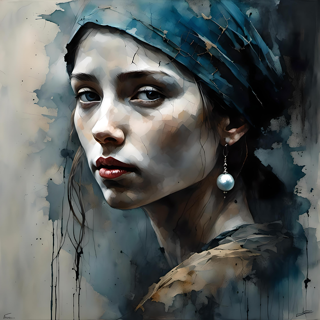Prints and Posters: ai generated, woman, girl with the pearl earring, painting, dark fantasy, mysterious, mood, gaze, fantasy