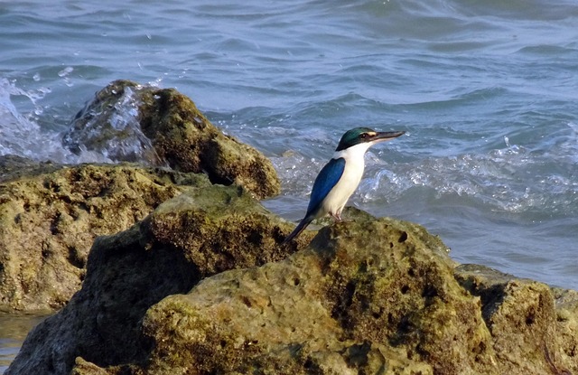 Towels: bird, kingfisher, andaman collared kingfisher, todiramphus chloris, medium-sized, halcyoninae, white-collared kingfisher, mangrove kingfisher, havelock, andaman, island, beach, sea, india