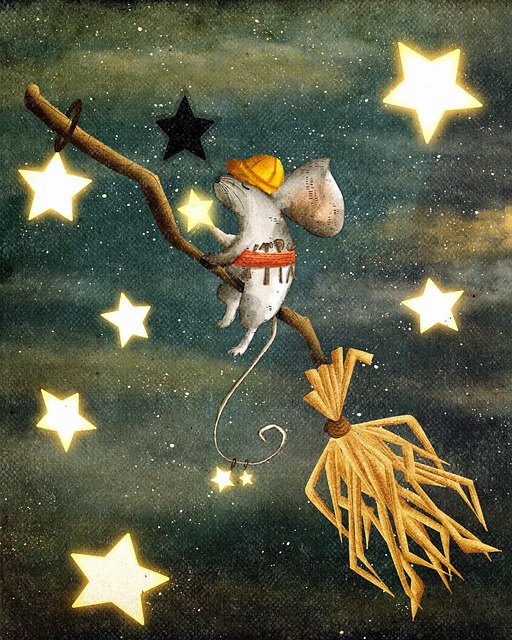 Prints and Posters: mouse, stars, fantasy, night, sky, drawing, shining