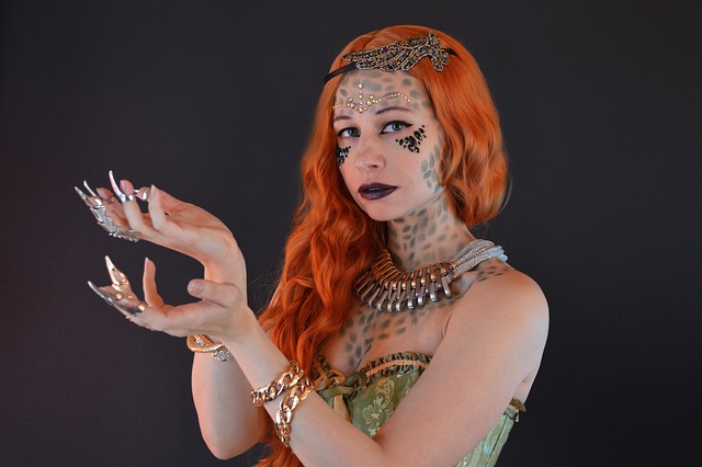 Prints and Posters: sorceress, fantasy, woman, costume, cosplay, magic, redhead, snake, cobra, makeup, myth, mysterious, mystical, girl, beauty, witchcraft, pose, portrait