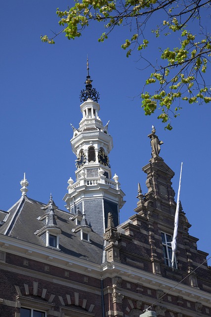 Shower Curtain: right in front of, amsterdam, netherlands, holland, amstel, building, architecture