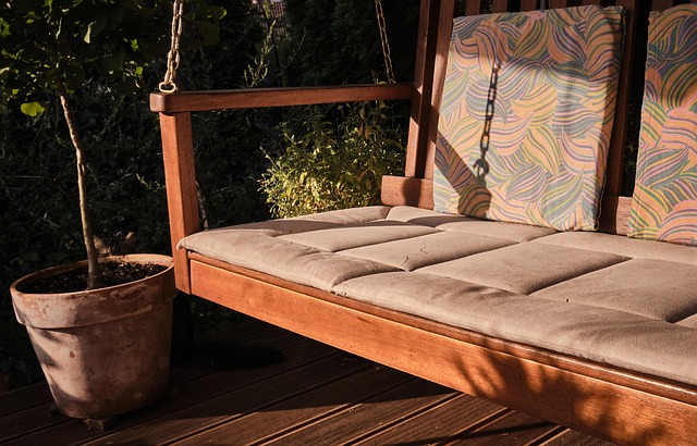 Tote Bags: bank, swing, morning mood, sunrise, terrace, seat, sofa, seating, relax, quiet, hang, hung up