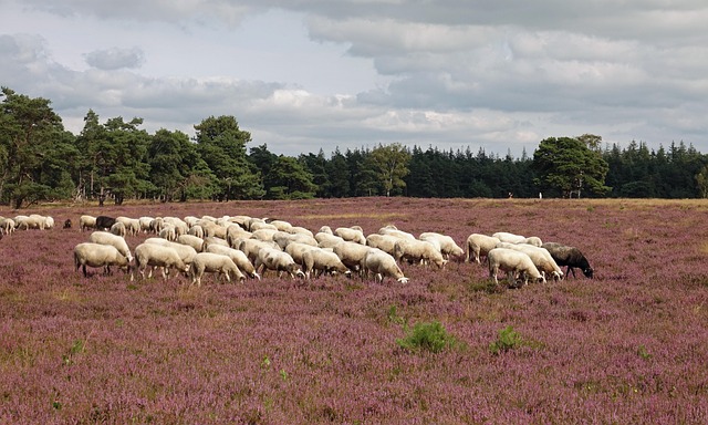 Tote Bags: heather, heath sheep, sheep, moorland, cattle, heather flowers, animals, nature, graze, purple, colorful